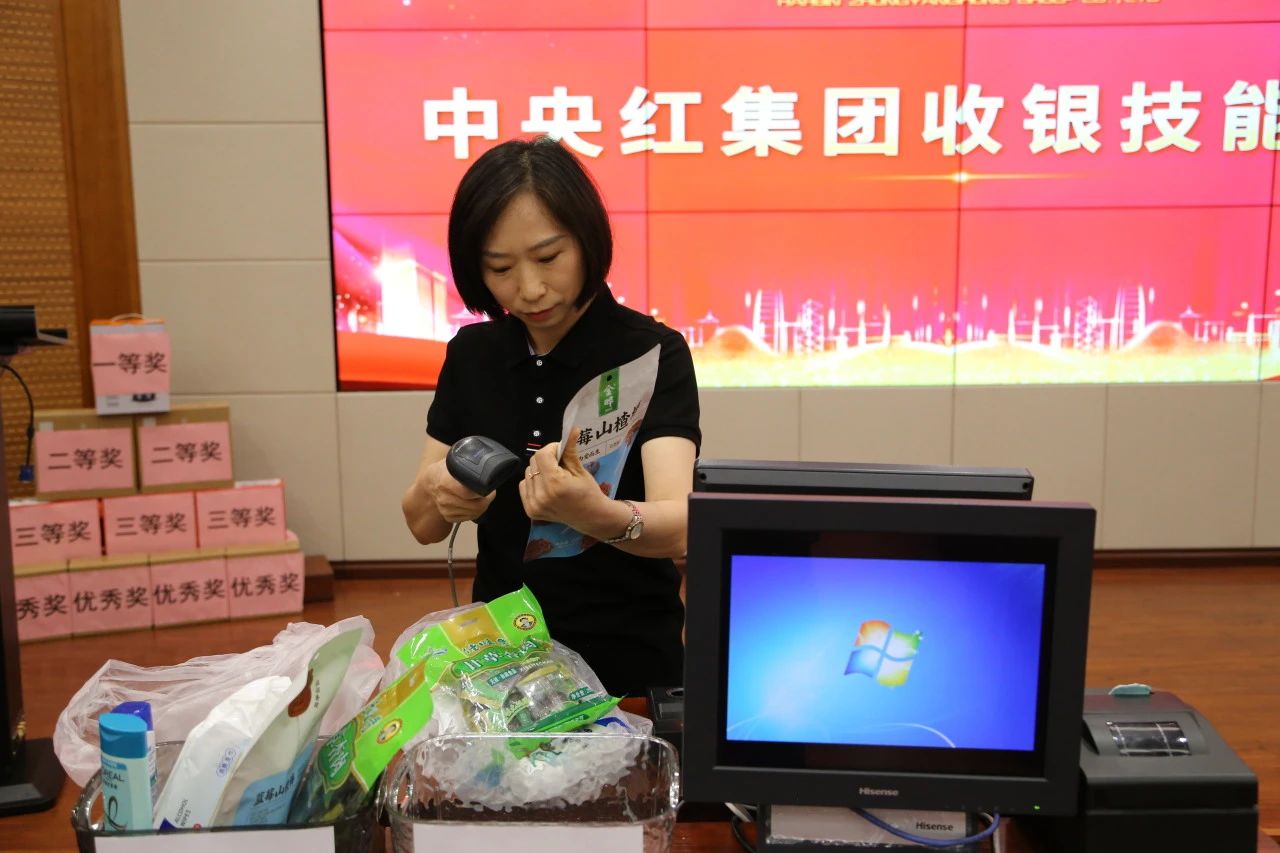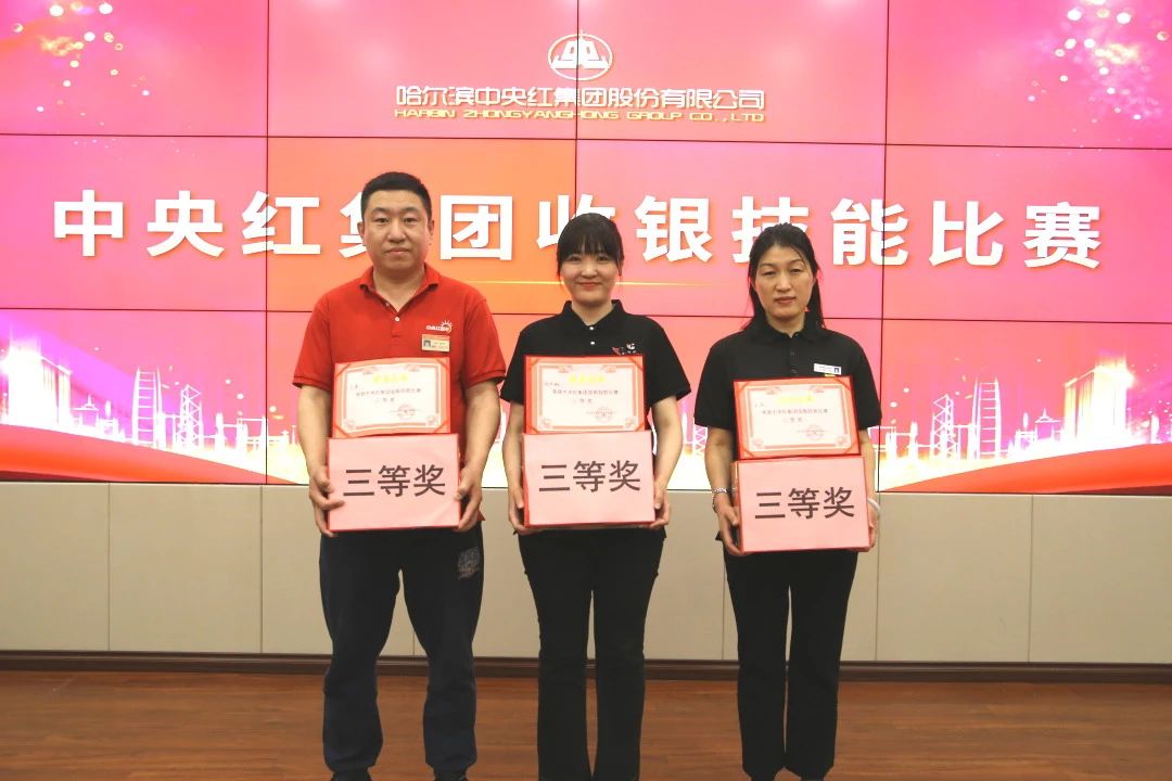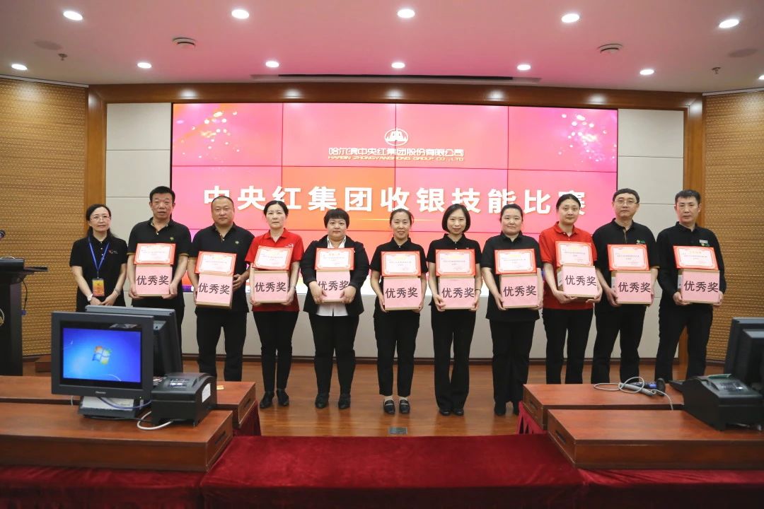 比赛过程中,评委们严格按照既定标准进行评判,从收款速度、准确性、服务态度等多个方面对选手们进行综合考量。经过激烈角逐,最终由中央红集团常务执行总裁,工会主席周广范宣读比赛成绩,并与中央红集团副总裁党委书记杨晓波、中央红集团副总裁孙亚楠、中央红集团财务总监邱敏为获奖选手颁奖。